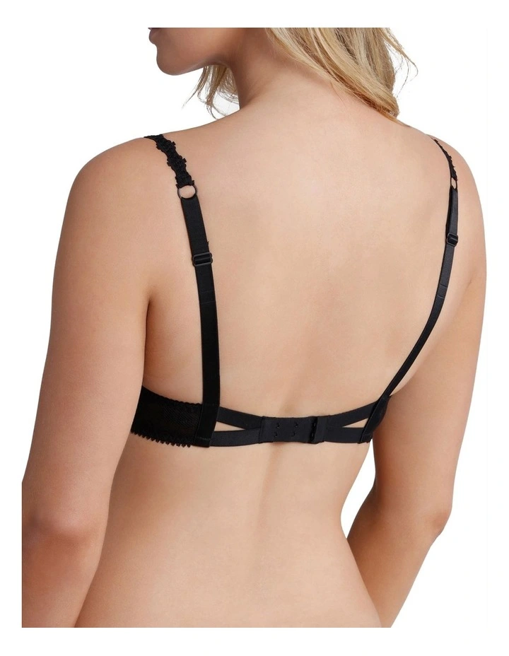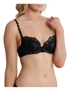 This balconette bra creates a pretty sweetheart dcolletage with wide set detailed shoulder straps. This bra is lightly padded and made from a soft stretch satin with lace trims. A perfect addition to your everyday lingerie wardrobe.