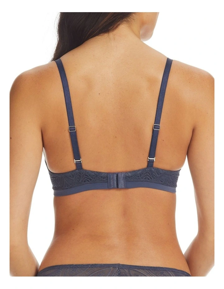 T Shirt bra with feminine yet graphic lace and silver hardware for a touch of glamour.Β Β